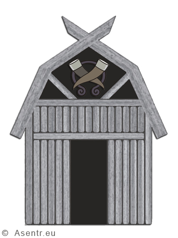 a) Ein kleines Tempelgebäude, in dem auf einem Holzgestell (Stallr) die Götteridole (Stafr) gestanden haben können (Ranheim).
