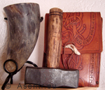 Zeremonielle Gegenstände - Eheleuchter, Familienchronik, Flammenschale, Räucherschale, Räucherwerk, Haselstäbe, Leintuch, Holzschale für Ringe, Thorshammer, Sinngaben, Met, Trinkhorn