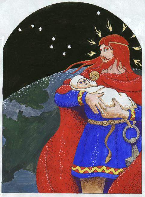 Man kann jetzt z.B. mit einem Buch wie Voenix' Germanischer Götterhimmel die Gottheiten durchgehen und dem Kind darüber einfache Geschichten erzählen, die z.B. nur die wichtigsten Attribute der Götter erklären. Ich halte es für sinnvoll, hier auch schon darauf hinzuweisen, daß diese Geschichten nicht die "abschließende Wahrheit" über die Gottheit darstellen, sondern daß die Kinder die Götter "später besser kennenlernen werden".