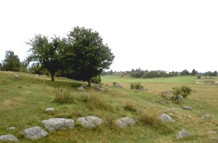 Blick vom Burgberg zu dessen Wall und dahinter auf Svarta Jorden.