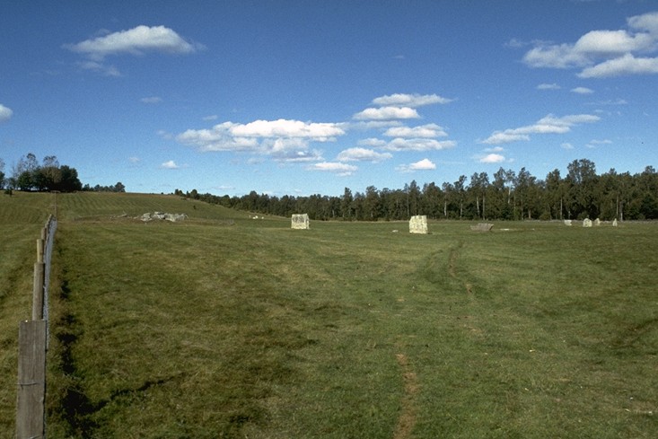 Die Bautasteine in einer Linie von Süd nach Nord,