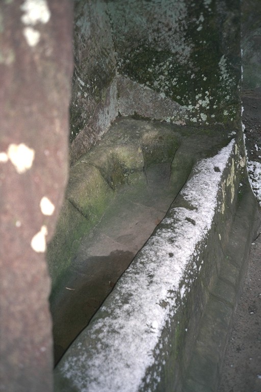 Das Felsgrab, auf dessen Oberseite das "Podest" zu erkennen ist. Man beachte auch