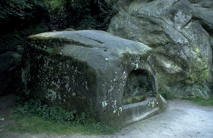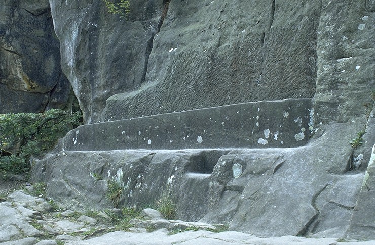Der berühmte Fels 2 von Südwesten (links) und Nordosten. War er mit der aus ihm gehauenen Höhenkammer