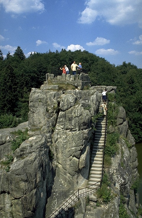 Blick auf Aufgang und Plateau von Fels 1 von der Höhenkammer aus.