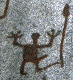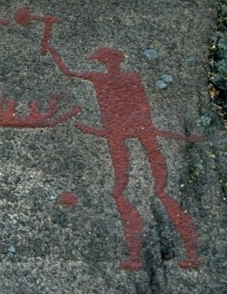 In Aspeberget gibt es das Bild eines Mannes, dessen rechte Hand erhoben und überdimensioniert