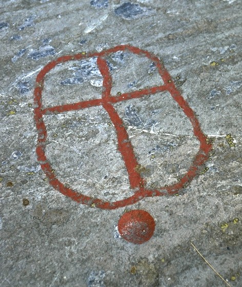 Da man in einigen Ritzungen Farbreste fand, geht man davon aus, daß die heute mit roter Farbe