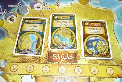 Jeder Spieler agiert im Prinzip für sich, was auch bedeutet, daß man das Spiel abweichend von der Herstellerangabe mit nur 2 Spielern spielen kann. Dann dauert es entsprechend länger; eine Partie wird mit ca. 90 Minuten angegeben. Konkurrenz kommt dadurch ins Spiel, daß man versuchen kann, sich gegenseitig die Saga-Aufgaben wegzunehmen. Dazu trägt bei, daß bei mehrstufigen Aufgaben derjenige die Saga-Karte bekommt, der den letzten Aufgabenteil abschließt. Weiterhin gibt es sogenannte Runenkarten, die zwischendurch ausgespielt werden können. Diese verändern den Spielablauf, indem sie Boni und Mali geben, z.B. kann man bei einem Raubzug ohne eigene Verluste angreifen, man kann ein Mitspielerschiff von einem Meerungeheuer angreifen lassen usw.